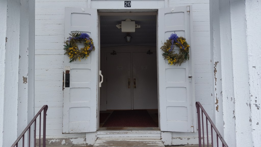 The front door before renovations at the First Congregational Church of Brimfield, UCC.